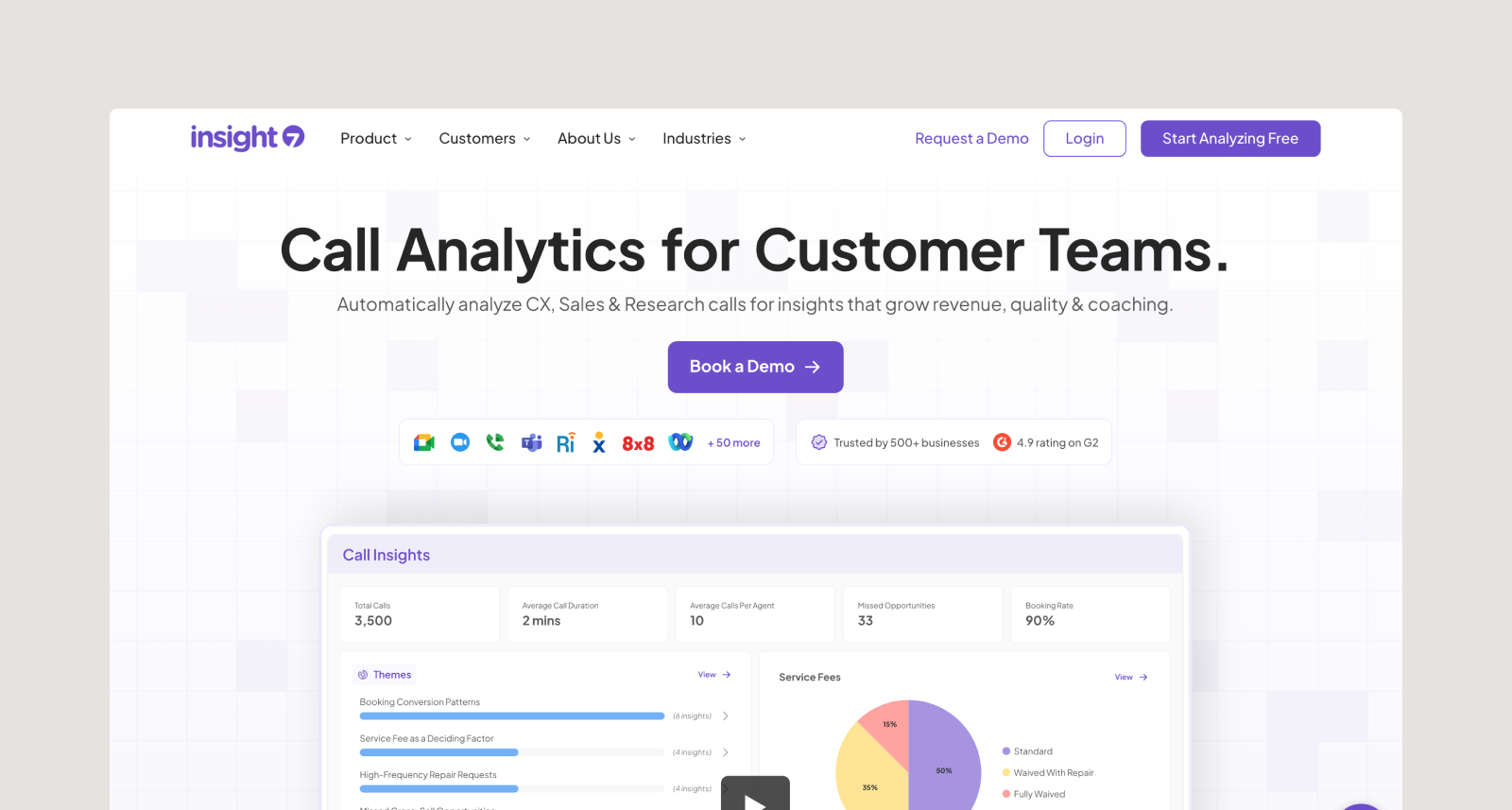 Insight7 is an AI platform designed to help companies enhance their performance in customer-facing workflows, including sales calls, customer service interactions, and market research.