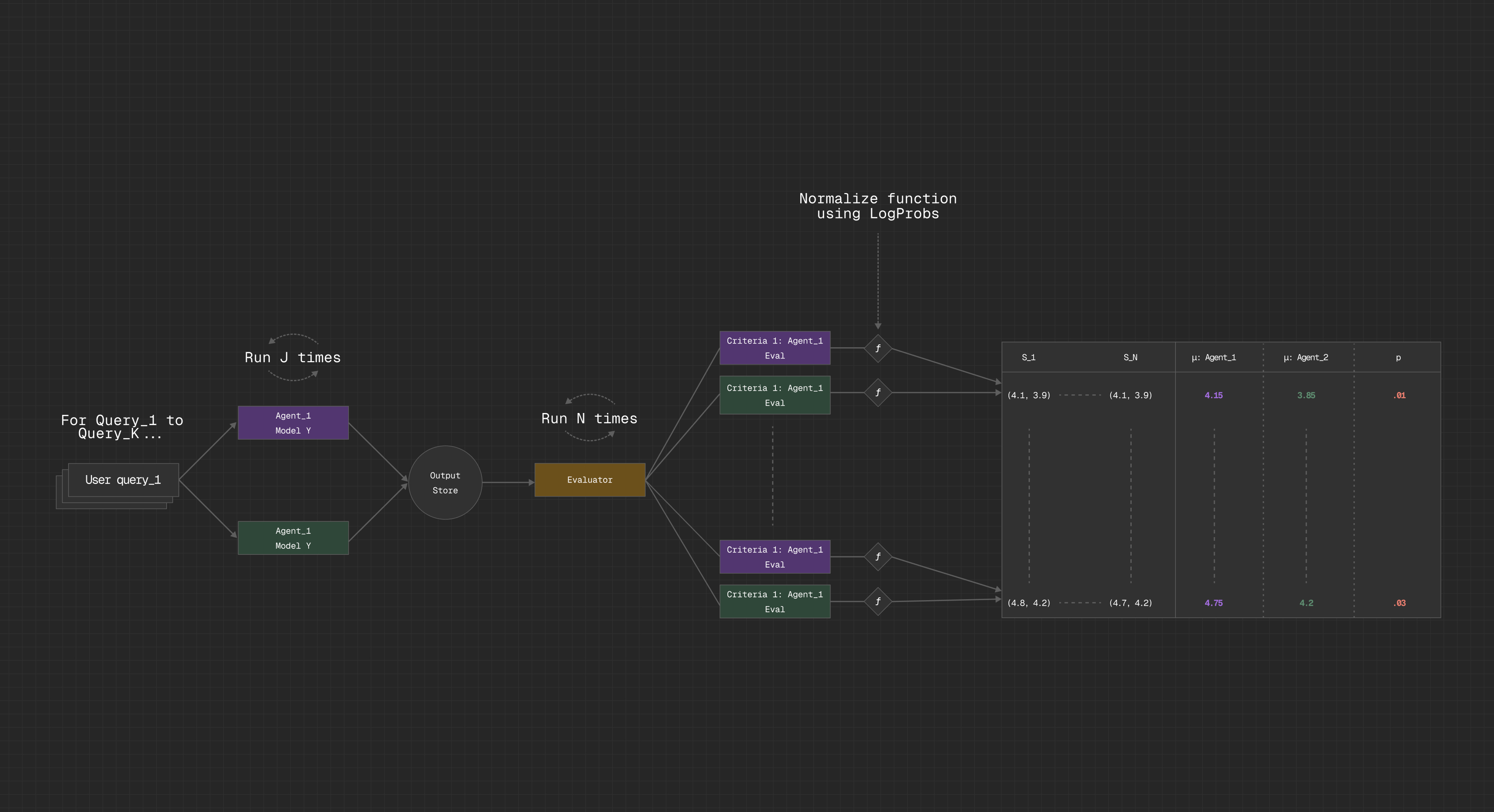 By synthesizing advances from G-Eval, GPTScore, and BooookScore, and reinforcing them with permutation-based hypothesis testing, we constructed a system that can autonomously evaluate qualitative performance with statistical fidelity. Add in the ability for our users and our internal teams at Hebbia to define criteria ad hoc based on the objectives of a given agentic system, and you have a flexible and adaptable framework that scales with your needs.